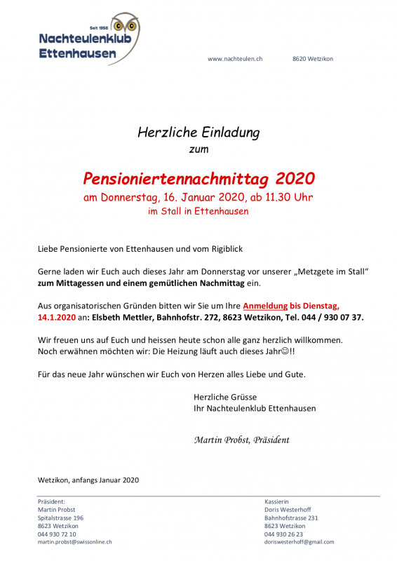 Pensioniertennachmittag mit Mittagessen